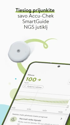 Programėlė mySugr pasižymi asmeniniu pradžios ekranu, kuris leidžia akimirksniu peržiūrėti svarbiausius rodmenis. Integravus suderinamus Accu-Chek gliukozės kiekio kraujyje matuoklius, jūsų duomenys įrašomi automatiškai, garantuojant tikslumą ir taupant jūsų laiką. Be to, su mySugr gliukozės įžvalgomis, aktyvuojamomis prijungus Accu-Chek SmartGuide jutiklį, galėsite stebėti gliukozės lygį realiuoju laiku tiesiai savo mobiliajame įrenginyje ar net Apple Watch, gauti prognozes apie galimus svyravimus ir pritaikyti perspėjimus pagal individualius poreikius, nustatydami tikslinius intervalus.