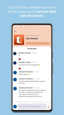 „My Talent Radio" peržengia pasyvaus klausymosi ribas, kviesdama jus įsitraukti į gyvą bendruomenę. Prisijunkite prie tiesioginių pokalbių kambarių ir bendraukite su bendraminčiais klausytojais, dalinkitės mintimis bei įspūdžiais. Išbandykite savo žinias interaktyviose viktorinose, varžykitės su draugais ir mokykitės vieni iš kitų, kurdami dinamišką ir įdomią aplinką. Tai puiki vieta ne tik klausytis, bet ir atrasti, dalintis bei augti kartu su kitais garso turinio entuziastais. Būkite pirmieji, kurie sužinos apie naujus leidimus ir atnaujinimus, dėka pritaikytų pranešimų.