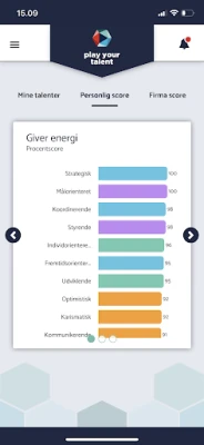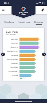 „Play Your Talent" sistemos esmė – tai greita ir tiksli individualių talentų analizė. Vos per 12 minučių, atlikus interaktyvią realaus laiko viktoriną, kiekvienas asmuo, darbuotojas ar vadovas gali gauti išsamią įžvalgą apie savo unikalius talentus tiesiai savo telefone. Kai visi komandos nariai užpildo viktoriną, įmonė iš karto gauna apibendrintą talentų statistiką, kuri vizualizuojama patogioje ataskaitų lentoje. Tai leidžia aiškiai matyti talentų pasiskirstymą įvairiuose skyriuose ir komandose, atskleidžiant esminius skirtumus ir bendrumus, kurie gali tapti puikiu atspirties tašku kūrybiniams procesams ir bendrai pažangai. Pradinė statistika yra anoniminė, užtikrinanti saugią ir atvirą aplinką savęs pažinimui, kol nusprendžiama aktyvuoti detalesnę analizę.