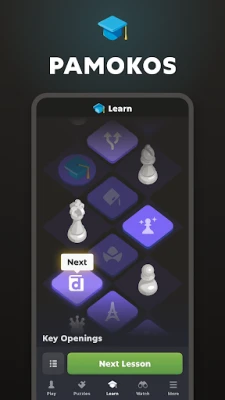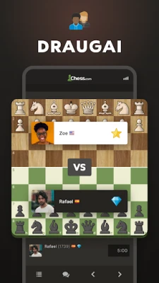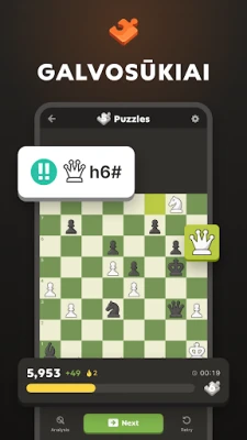 Mėgaukitės dinamiškomis partijomis su draugais 2 žaidėjų režimu arba išbandykite savo jėgas tūkstančiuose kasdienių turnyrų. Susipažinkite su naujais oponentais, bendraukite ir žaiskite realaus laiko partijas, kurių trukmė gali svyruoti nuo minutės iki ilgesnių dvikovų. Jei ieškote ramesnio tempo, pasinerkite į korespondencinių šachmatų pasaulį, kur galėsite žaisti pagal savo dienotvarkę. Norėdami sustiprinti savo taktiką, **Chess.com** siūlo daugiau nei 500 000 unikalių galvosūkių, prisitaikančių prie Jūsų įgūdžių lygio. Interaktyvios pamokos ir meistrų vaizdo įrašai, apimantys debiutus, vidurio žaidimą ir endšpilius, padės Jums nuosekliai lavinti savo strateginį mąstymą.