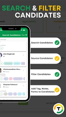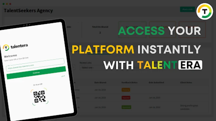 Be to, „Talentera mobile app" skatina sklandų komandinį darbą ir nuolatinę apžvalgą. Gaukite momentinius pranešimus apie svarbius įvykius, kad niekada nepraleistumėte geriausių talentų ar svarbių atnaujinimų. Stebėkite realiu laiku darbo skelbimus, paraiškas ir pagrindinius rodiklius, o prietaisų skydelis akimirksniu pateiks aiškią jūsų įdarbinimo veiklos apžvalgą. Dalinkitės įžvalgomis, žymomis ir pastabomis su savo komandos nariais, kad kartu priimtumėte pagrįstus sprendimus ir efektyviau pasiektumėte įdarbinimo tikslus.