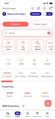 Ši platforma revoliucionizuoja CV ir resursų valdymą, automatizuodama profilių sudarymą ir įgūdžių inventorizavimą. Generatyvinė Įgūdžių AI automatiškai klasifikuoja resursų įgūdžių lygį, taupydama šimtus valandų ir pašalindama poreikį gilintis į šimtus profilių. Domeno AI paieška ir atitikimas, pagrįstas kontekstu ir įgūdžių gretimybės analize, užtikrina precedento neturintį tikslumą ieškant ir vertinant tinkamiausius specialistus. Be to, „Talent.Exchange" paverčia nestruktūrizuotus CV duomenis į standartizuotus profilius su automatine įgūdžių kalibracija, leidžiančia lengvai rasti ir filtruoti reikiamus resursus naudojant supaprastintus kriterijus.