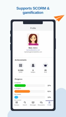 Su „TalentLMS" programa besimokantieji įgyja visapusę prieigą prie jiems priskirtų mokymų, leidžiančią tobulėti nepriklausomai nuo vietos ar laiko. Sklandžiai tęskite bet kurį kursą, pradėtą darbe ar namuose, ant stalo stovinčiame kompiuteryje – viskas sinchronizuojama akimirksniu. Sekite savo pažangą realiuoju laiku ir stebėkite, kaip kaupiasi taškai, kyla lygiai bei atsiranda nauji ženkleliai, kurie įkvepia siekti dar geresnių rezultatų. Atsisiųskite kursų medžiagą naudotis be interneto ryšio ir leiskite programai automatiškai sinchronizuoti duomenis, kai vėl prisijungsite prie tinklo.