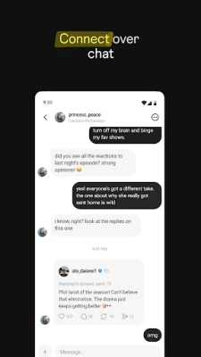 Nerkite į gyvus pokalbius, reaguokite į draugų ir mėgstamų kūrėjų humorą, komentarus ir įžvalgas. Raskite bendraminčius ir prisijunkite prie bendruomenių, kurios dalijasi Jūsų aistra – nuo naujausių TV rekomendacijų iki karjeros patarimų. Tinkinkite nustatymus, kad valdytumėte, kas mato Jūsų turinį, atsako į Jūsų „Threads" įrašus ar jus mini. Blokuotos paskyros perkeliamos iš Instagram, o „Meta" bendruomenės gairės užtikrina saugią ir autentišką aplinką. Būkite informuoti apie naujausias tendencijas, gyvus renginius ir naujienas – „Threads" yra atviro pasaulinio socialinio tinklo, vadinamo fediversu, dalis, leidžianti Jums atrasti ir bendrauti plačioje, tarpusavyje susijusioje erdvėje.
